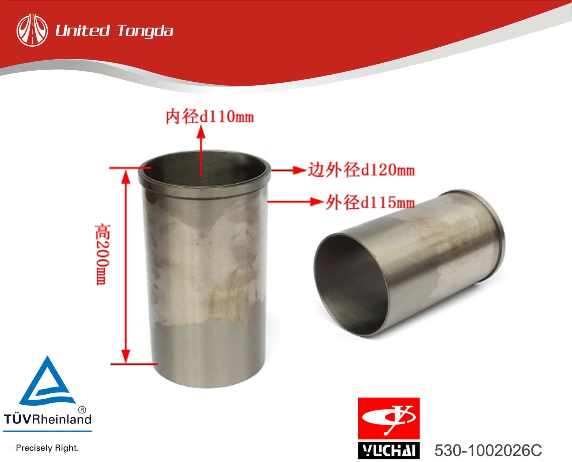 Yuchai Cylinder liner 530-1002026C